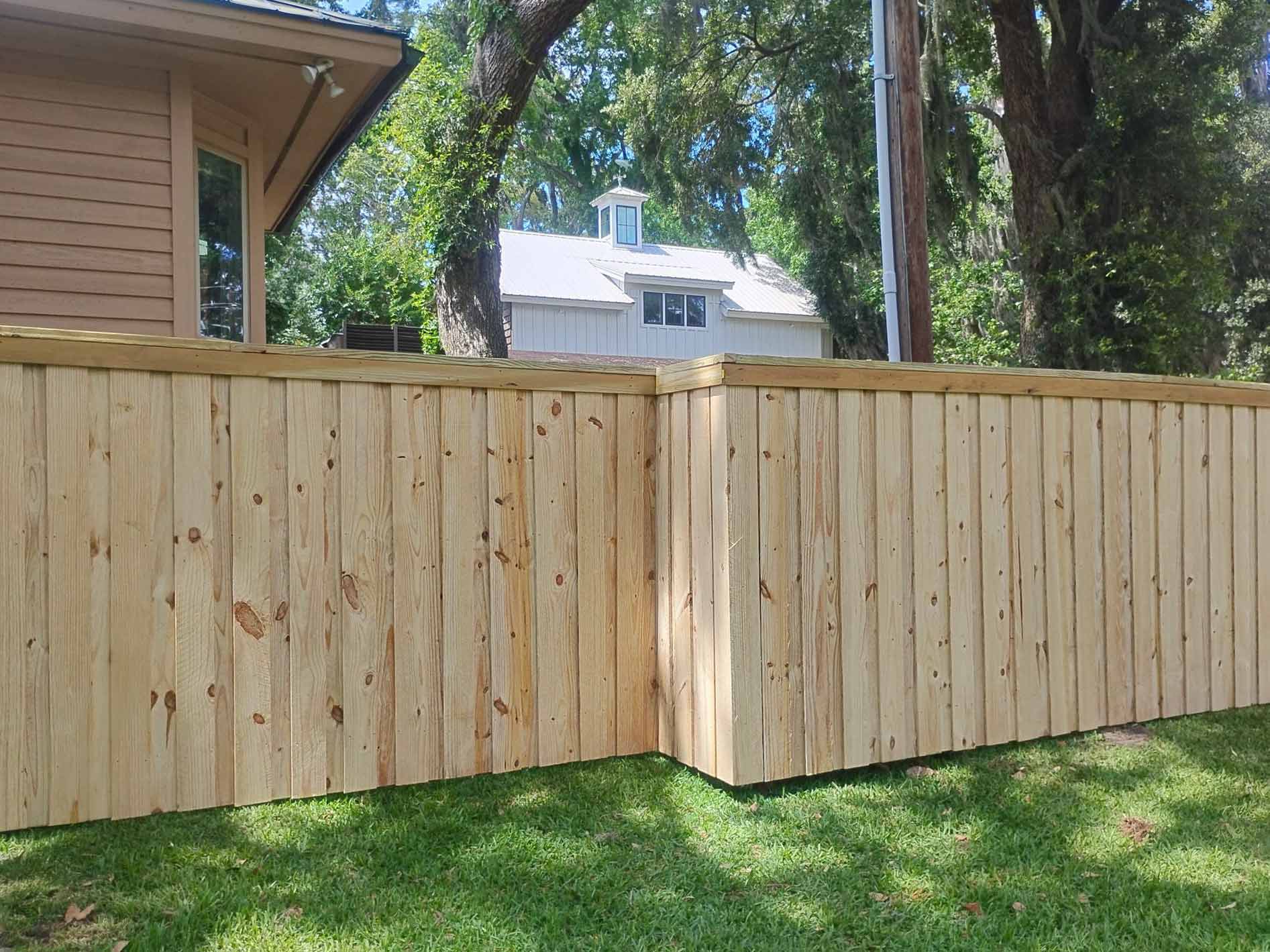 Traditional and timeless, the stockade or solid board fence provides a solid wood boundary. Its simplicity is its biggest strength, making it a top choice for many Tybee Island homeowners who value both privacy and a classic appearance.